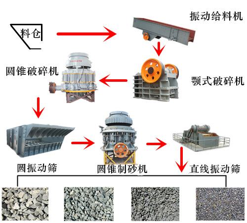 制砂生產(chǎn)線需要根據(jù)不同的工藝要求來配置設(shè)備。一般情況下,常用的設(shè)備有振動給料機(jī)、顎式破碎機(jī)、圓錐破碎機(jī)、反擊式破碎機(jī)、立軸沖擊式破碎機(jī)、振動篩以及其它的配套設(shè)備等,每種設(shè)備都有不同的型號以及適用物料。